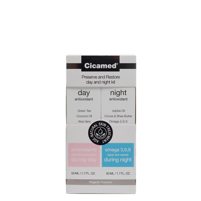Cicamed Preserve and Restore Day & Night Kit är ett kit med en dagkräm och en nattkräm som motverkar ålderstecken.