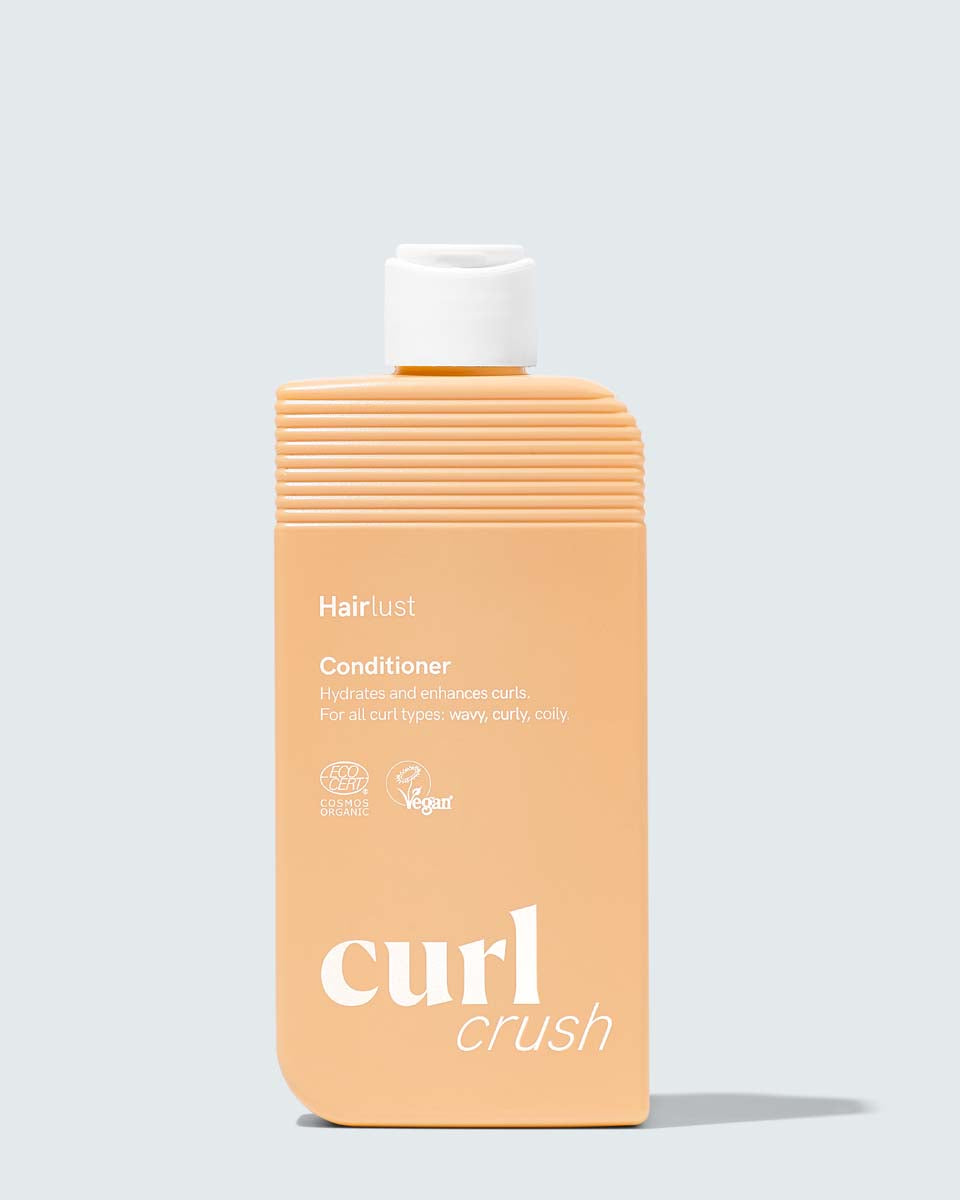 [description_mini_start]3-i-1 balsam till lockigt hår: använd som co-wash, leave-in eller vanligt balsam.[description_mini_end][description_teaser_start]Här är produkten som ger dig friska och återfuktade lockar! Denna produkt kan användas som en co-wash, ett balsam eller ett leave in balsam för lockigt hår. Curl Crush™ Conditioner är ett balsam för lockigt hår och har en unik mix av ingredienser från aktiva växter som stärker, skyddar och definierar alla olika sorters lockar.Säg hejdå till torrt och frissigt hår – välkomna glänsande, definierade och studsiga lockar.[description_teaser_end][description_full_start]Så fungerar detHairlust Curl Crush™ Conditioner är ett balsam för lockigt hår som har en mångsidig, multifunktionell formula för att tillgodose de specifika behoven för lockigt hår Tack vare dess unika mix av stärkande och återfuktande ingredienser, agerar Curl Crush™ Conditioner som ett:Co-wash: Använd i stället för schampo för att rengöra lockigt hår.Vanligt balsam som sköljs ur: Applicera efter schamponering för att släta ut det yttersta hårskiktet och återställa hårets fuktinnehåll.Leave-in conditioner: Fukta uttorkade lockar genom att använda denna produkt som ett leave in balsam för lockigt hår.Vi tog fram Curl Crush™ Conditioner med en aktiv blandning av veganska mikroproteiner, bambuextrakt och fuktförstärkaren aquaxyl™, som alla hjälper till att ge håret en intensiv vård och frisskontroll. Fri från parabener, silikoner, mineralolja och sulfater![description_full_end][declaration_start]250 ml/8.5 fl.oz.Aqua, Aloe Barbadensis Leaf Juice*, Helianthus Annuus Seed Oil, Glycerin, Coco-Caprylate/Caprate, Cetearyl Alcohol, Distearoylethyl Dimonium Chloride, Xylitylglucoside, Anhydroxylitol, Sodium Benzoate, Citric Acid, Xylitol, Potassium Sorbate, Sodium Gluconate, Glucose, Hydrolyzed Rice Protein, Phyllostachys Bambusoides Extract*, Euterpe Oleracea Fruit Extract*, Parfum (Naturlig). *Ekologisk ingrediens.98,8% naturliga ingredienser, varav 16,1% är ekologiska.pH-värde: 4,0-4,5.Den naturliga parfymen kommer från havtorn och har en tropisk doft av saftiga apelsiner, solmogna svarta vinbär och söta litchifrukter, med inslag av jasmin och petitgrain. Ibland även inslag av karamell och vanilj. En doft som får dig att känna som om du sitter vid vattnet på en tropisk ö, med saltvatten i håret och en kall drink i handen.[declaration_end][guide_start]Curl Crush™ Conditioner kan användas på tre sätt:Som co-wash: Hoppa över schampo och applicera istället Curl Crush™ Conditioner i blött hår. Massera in produkten i hårbotten i två minuter med hjälp av fingrarna eller med Scalp Massage Brush. Trassla försiktigt ut håret med fingrarna eller en bredtandad borste. Skölj sedan ut samtidigt som du kramar ur håret.Som vanligt balsam: Applicera det tjocka balsamet i lockigt, nytvättat och handdukstorkat hår. Låt det verka i 2-3 minuter (längre om dina lockar behöver extra fukt). Skölj sedan ur med ljummet vatten medan du varsamt kramar ur ditt hår.Som leave in balsam för lockigt hår: Arbeta igenom fuktigt hår med fingrarna och fokusera på längder och toppar. Om du har mellanlångt hår, använd mängd balsam motsvarande storleken av ett mynt. Skölj inte ur![guide_end][faq_start]Fungerar detta balsam för alla hårtyper?[faq_title_end]Hairlust balsam för lockigt hår fungerar för alla lockiga hårtyper, från vågiga till krulliga. Denna produkt fungerar bäst för hårtyperna 2A-2C, 3A-3C, och 4A-4C.[faq_item_end]Kan detta balsam för lockigt hår användas om man följer Curly Girl Metoden?[faq_title_end]Curly Girl Method (även kallat Balsammetoden) är en speciell hårvårdsrutin designad för att förbättra hälsa och definition av lockigt hår. Inte bekant med det? Läs då vår guide om Curly Girl Metoden!Curly Girl Method rekommenderar att man undviker produkter som innehåller sulfater, uttorkande alkoholer, silikoner, mineraloljor eller parabener. Curl Crush™ Conditioner är Curly Girl Method-godkänd eftersom den är framtagen utan dessa skadliga ingredienser. Du behöver dock inte följa Curly Girl Metoden för att kunna använda detta balsam.[faq_item_end]Hur kan jag optimera mina resultat?[faq_title_end]Hairlust kollektion av produkter till lockigt hår är utformad för att få ut det bästa av lockigt hår. Inget friss, ingen torrhet, inget fett – helt enkelt bara definierade och välbalanserade lockar.Vi rekommenderar användning av Curl Crush™ Conditioner tillsammans med de andra produkterna i vår Curl Crush™ kollektion:Curl Crush™ Shampoo för att tvätta håret veckovis.Curl Crush™ Hair Mask för att återfukta och stärka håret på djupet en gång i veckan.Curl Crush™ Defining Cream för att styla och definera lockar.Önskar du att lära dig mer om The Curly Girl Method, läs då denna artikeln och få bästa resultat med dina lockar.[faq_end]