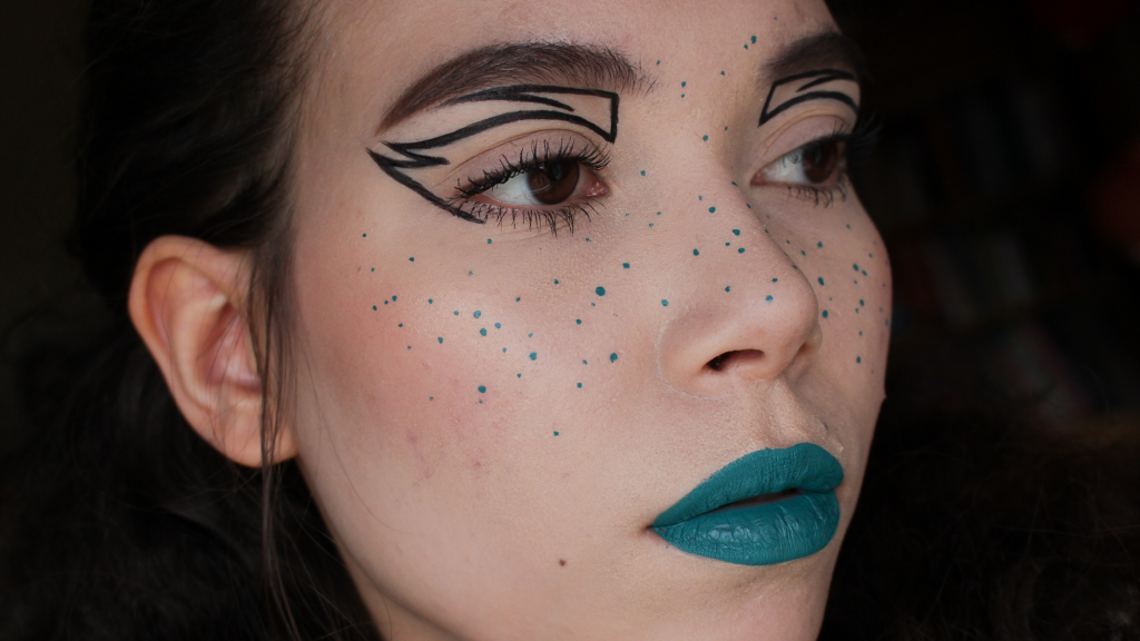 SUVA Hydra Liners har varit en favorit sedan jag testade dem för första gången. De är förpackade i en liten burk med skruvlock, och i fast form. För att använda dessa liners behöver man blöta dem, antingen med bara vatten eller kanske en setting spray. Då får man själv välja om man vill ta mer vatten och få en tunnare konsistens, eller mindre för en krämigare. Hur jag applicerar beror på vad jag ska använda de till, och då kommer vi ju till det bästa med Hydra Liners! En tunn eyelinerborste för en vanlig vinge, eller kanske turkosa fräknar, en engångsmascaraborste för vita fransar, eller en platt ögonskuggsborste för en lagom slarvig grafisk look? Eller på läpparna, till ansiktsmålning, ögonbrynen… Här kommer lite inspiration från mig, för att visa hur mångsidig produkt det är: